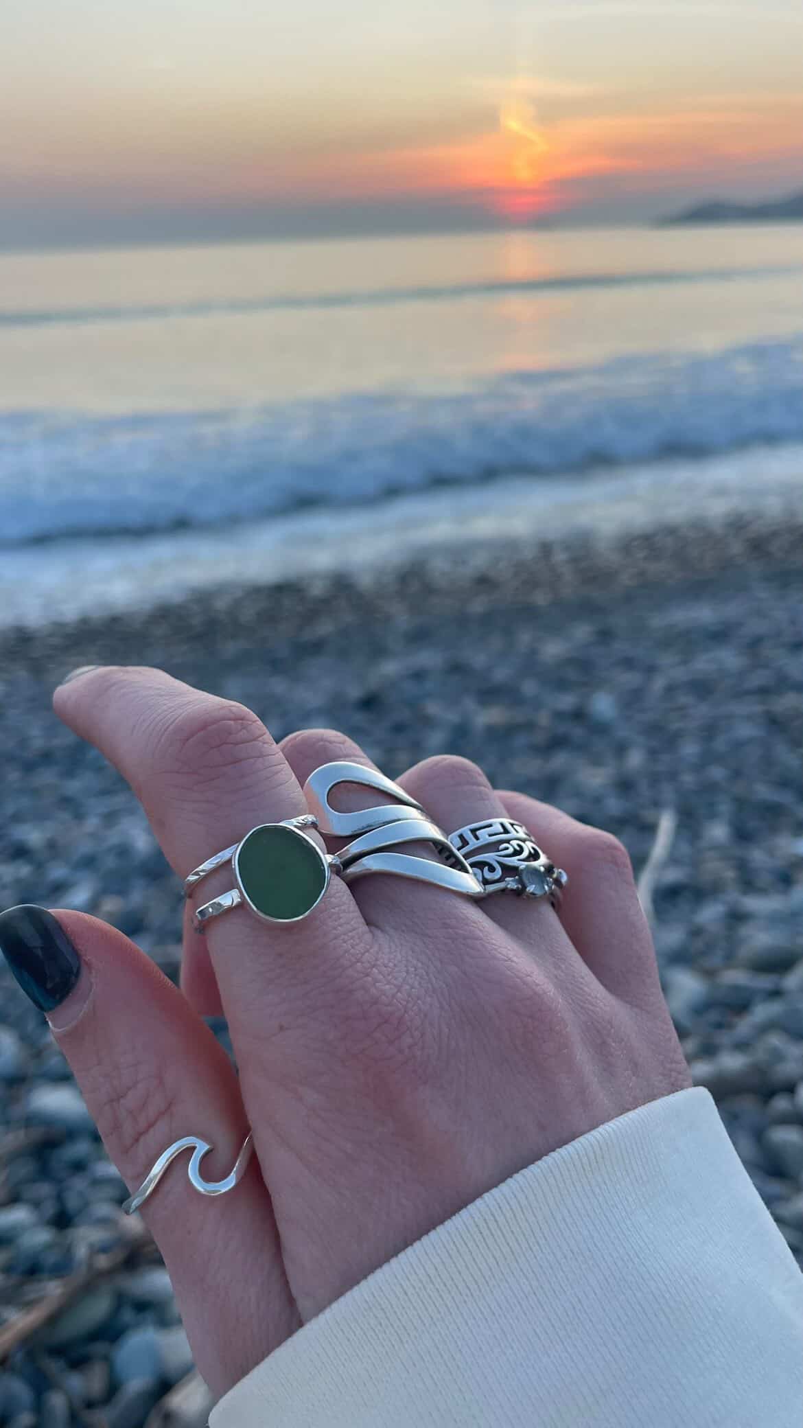 Hand-foraged Pembrokeshire sea glass set in sterling silver.